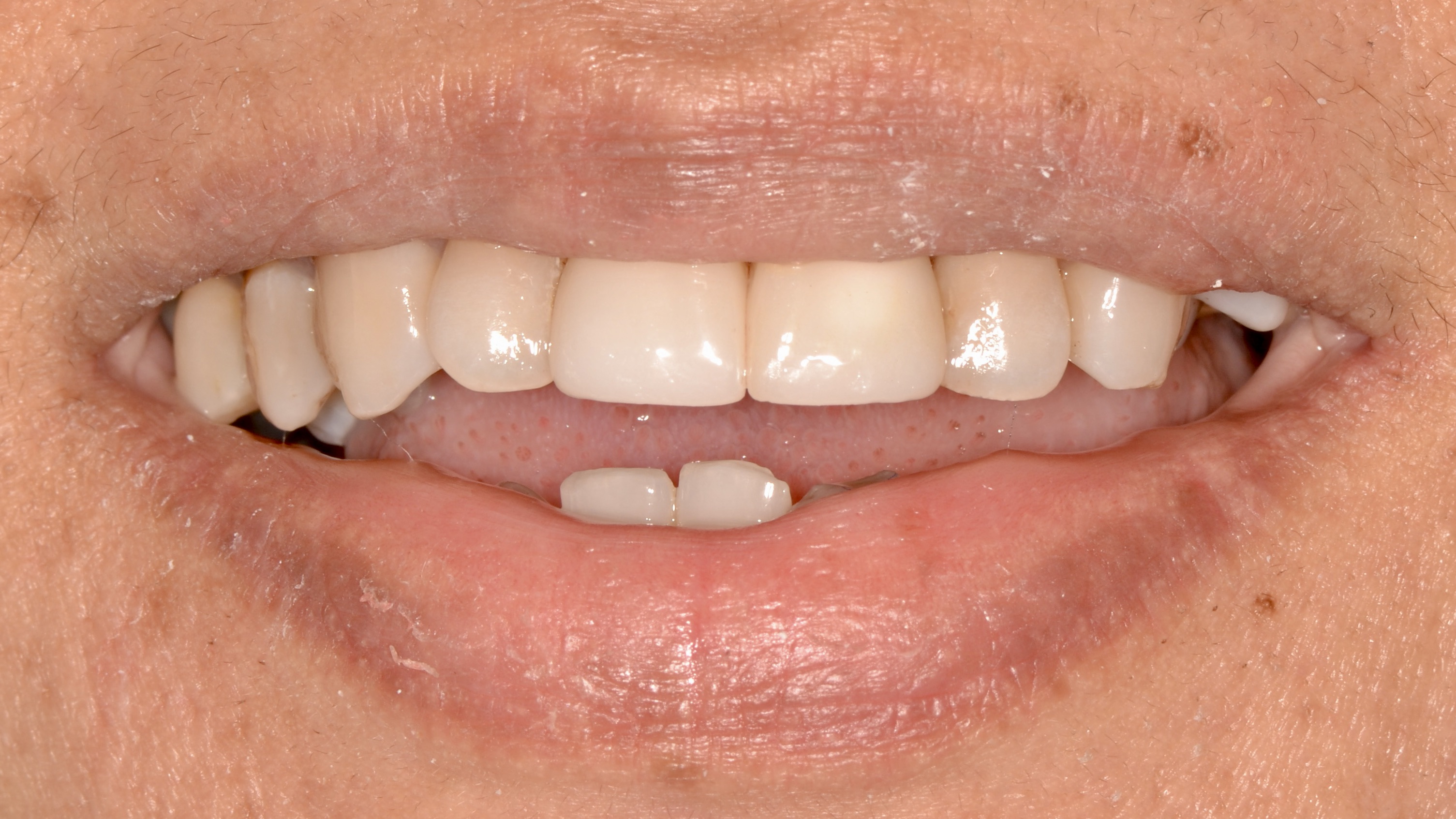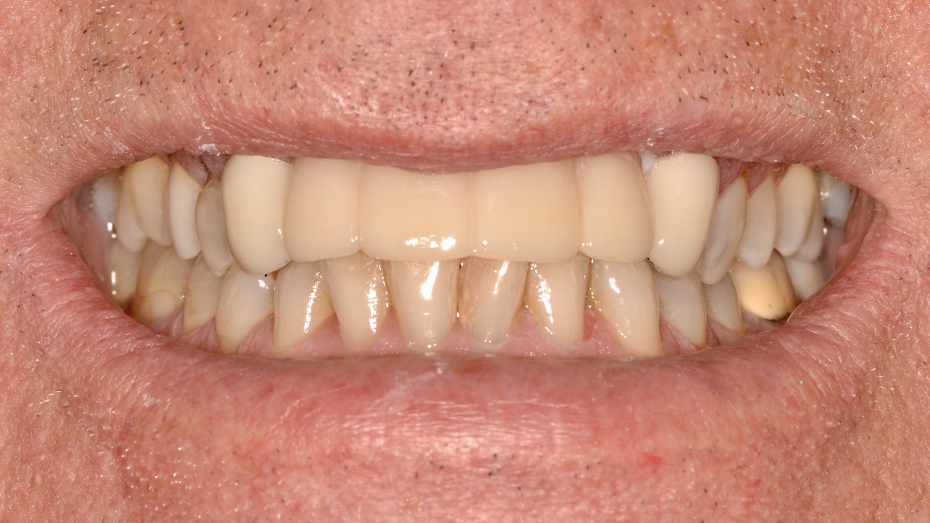 Six Front Teeth Anterior Crowns and Implant Bridge